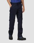 Hardwearing polycotton fabric with water repellent coating, Part-elasticated waist and knee pad pockets, Belt loops, zip fly opening and metal shank button to CF fasten, Two front pockets, one side cargo pocket button fasten and two rear pockets, Side leg ruler pocket, D-ring attachment and hammer loop, Reinforced crotch seam, Reinforced seams with triple stitching