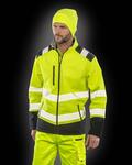 Three layer mechanical yarn fabric with durable water repellent finish, Waterproof to 8000mm, breathable to 3000g and windproof TPU membrane layer, Black colour contrast panels in strong oxford nylon fabric, Reflective print body bands, Zipped pockets, Stand up collar and hangtag, YKK full zip with chinguard, Open cuff, Conforms to EN ISO 20471:2013+A1:2016 Class 2, Orange also conforms to RIS-3279-TOM